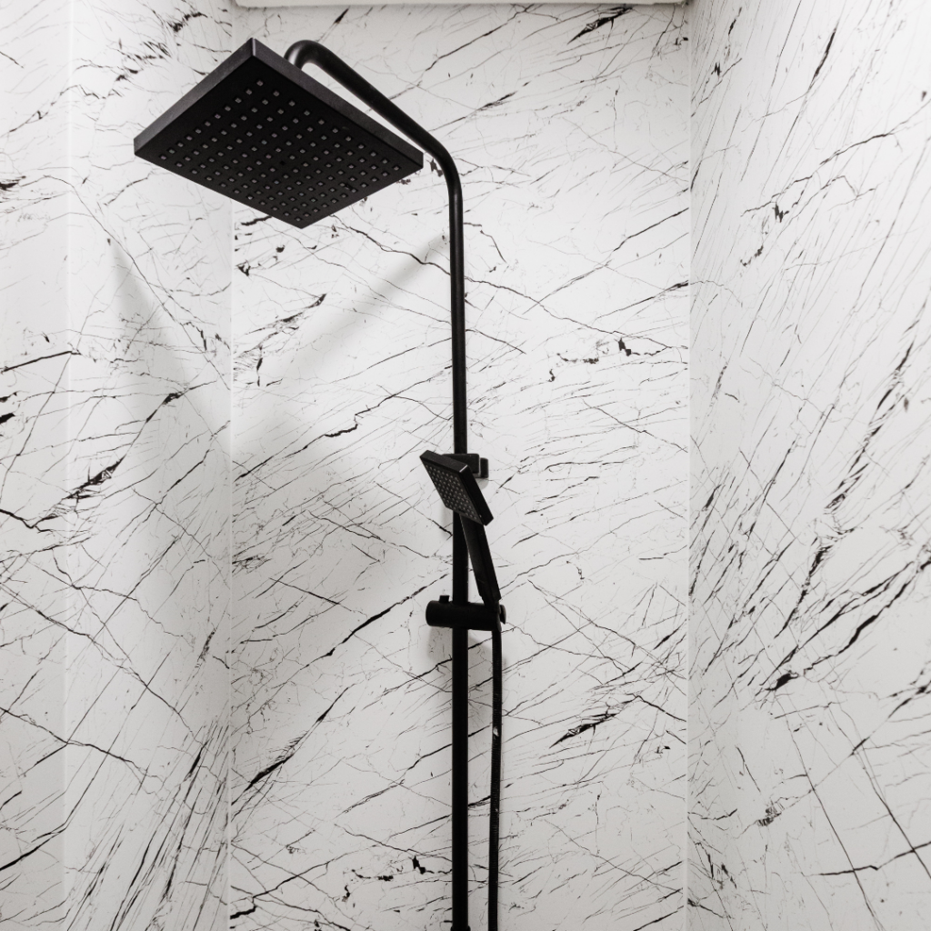 Certaines finitions marbre permettent de valoriser une salle de bain sans les contraintes du matériau naturel.